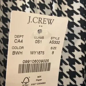 J.CREW LONG SLEEVE WOMENS DRESS SIZE 8 BRAND NEW BLACK AND WHITE COMBINATION