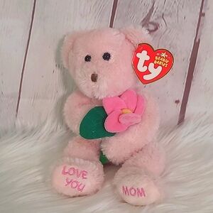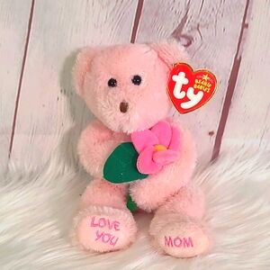 Y2K TY Beanie Baby Pink Love You Mom Mother's Day Bear Plush Stuffed Animal Toy