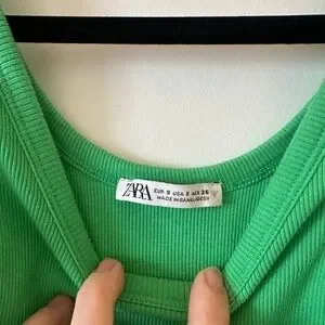 Zara crop scrunch tie sides tank top Kelly green color with ribbed cotton material