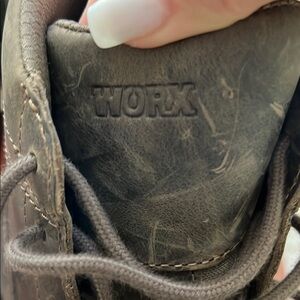 These Red Wing Shoes come in a bold brown color with a work-oriented or sporty style, featuring a Steel Toe. They are slip resistant and a men’s size 10.5 with a unique graphic design on the packaging. New Boots! Never Worn! Includes original box.