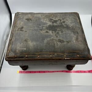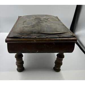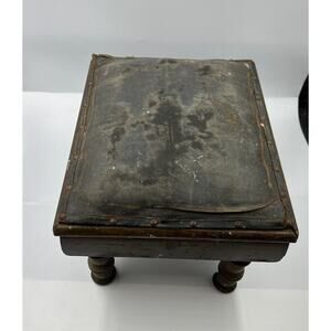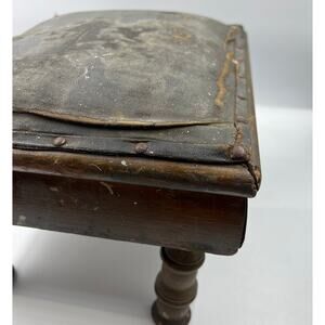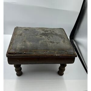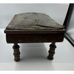 Vintage Primitive MCM Leather Craftsman Style Foot Stool Seat DISTRESSED