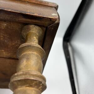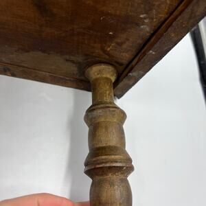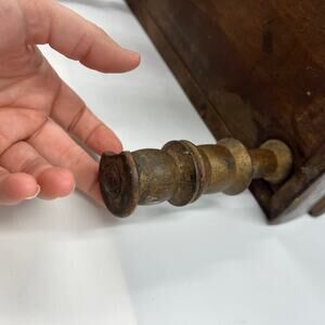 Vintage primitive midcentury modern leather top, craftsman style, spool legs. One leg will not screw on sturdy but stays wobbly. Overall stool is in distressed/ poor condition as pictured, sold as is.