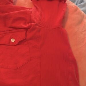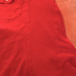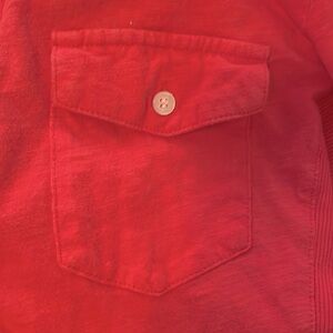 Features 2 pockets on each side of chest at front w button closures, 6 button closures down front leading to the extra-relaxed neckline which allows the slightest touch of collarbone to show,along w that necklace that is truly your signature piece. 🦋