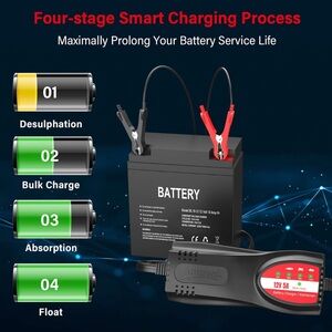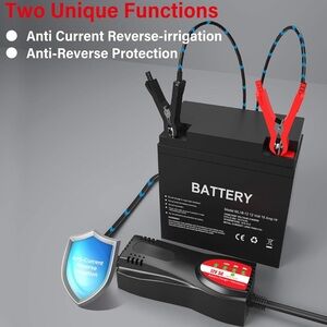 No worry about Reverse Polarity/Over-Voltage/Short Circuit/Low Voltage/Over Current; 25%/50%/75%/100% (Work/Error) indicators make you monitor and shoot troubles easily; Your optimal trickle charger for charging at night or in case of non-emergency need.