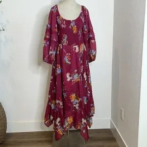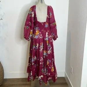 VGUC size L. Color is plum. Pull on style, smocked elastic top, skirt is lined. Approximate unstretched measurements: armpit-16 1/2”, length-48 1/2”-52 1/2”. J22-5130