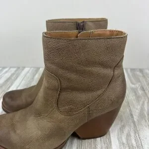Korks by Kork Ease Gemini Tan Leather Wedge Zip Ankle Boots Womens Size 6.5