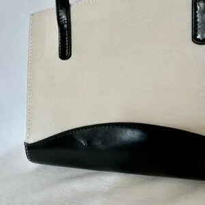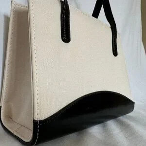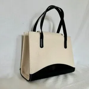 Ivory and black color block mini box tote with bow accent & magnetic snap closure.