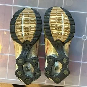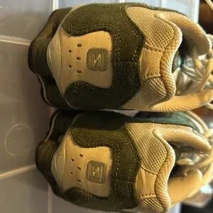 NIKE SHOX GENTLY USED! Size 8.5M. Colors olive green. First, I must tell you all it hurts to FINALLY let these shoes go. I LOVE THESE SNEAKERS; so much so, I have worn them about 20 times, each time, they hurt after about 6 hours; because they did NOT fit from the day of purchase. lol lol. I wore a 9 even then. They are comfortable, but they were NOT my size. The only pair they had; could not find them ANYWHERE at the time. I WANTED THEM! So, I have come to grips with the fact that they are too small for me. 😭