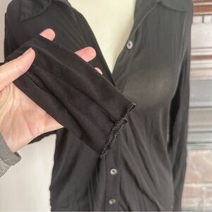This is a collared button-up longsleeve with a rounded hem. It’s made with Relux Jersey, an ultra-soft and drapey fabric that uses TENCEL™ Lyocell — responsibly sourced wood-based fibres produced through a closed-loop system that reduces environmental impact.