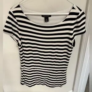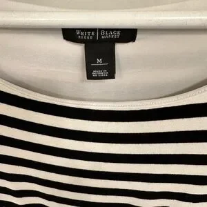 White House Black Market Black White Striped Peplum Top