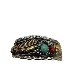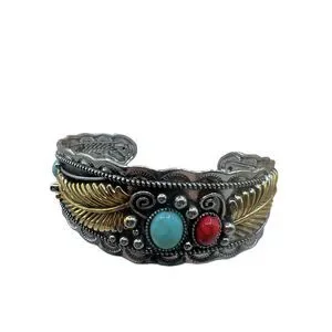 Features: Silver, Gold Accents, Turquoise Stone, Red Stone