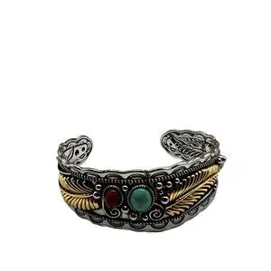 Silver Gold Accents Turquoise Stone Red Stone Boho Bracelet