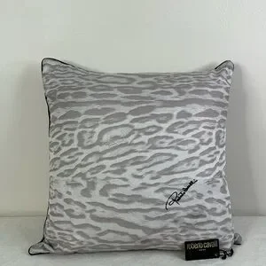 ROBERTO CAVALLI NWT NEW WITH TAG GRAY WHITE BLACK LARGE LEOPARD ACCENT PILLOW
