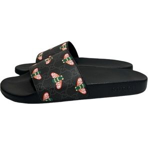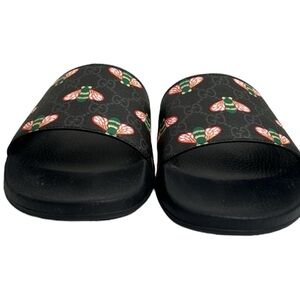 GUCCI NWT MEN’S BEE MONOGRAM BLACK WHITE SLIDES SANDALS SIZE 12 MADE IN ITALY