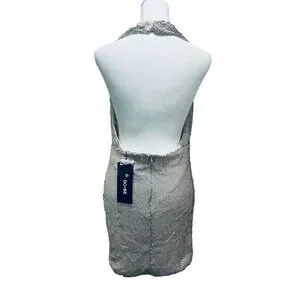 DO+BEl Women's Sequin Halter Ruffle Mini Dress Size M Beige NEW