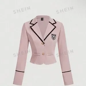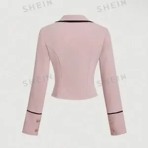 Pink Contrast Trim Retro Preppy Style Women Fall Blazer. NWOT
