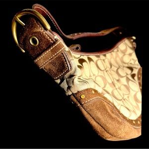 Vintage Coach Signature Logo with Suede & Brass Rivets SM bag #DO4J-7057 ✨👜💼🤎
