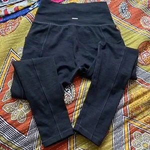 Hello hello! I am selling my EUC condition pair of leggings by Prana. They are a women’s size small. They are dark grey, ribbed (I think thats what you call it?) and are high waisted and regular length leggings. They have two side/thigh pockets. No stains no rips only worn a few times. Measurements in photos. Any questions feel free to ask . Thanks.