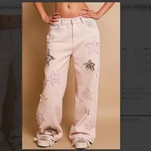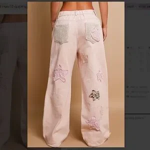 POL 🩵 216 POL Star Patched Jean Pants in Mauve SR36