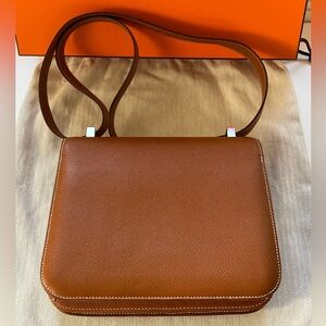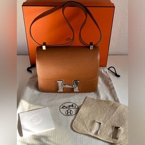 Authentic Hermes SAC CONSTANCE III 24 VEAU EPSOM in gold color w/ silver hardware. Used in great condition. Stamp A (2017). Made in France. Come with box, dust bag.