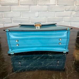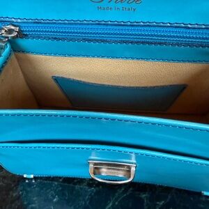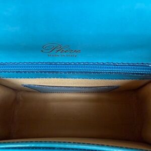 Phive made in Italy comes with dust bag,shoulder strap, outside pocket for phone and 2 inside pockets. Unique turquoise in color and in perfect condition!