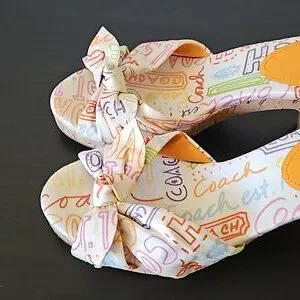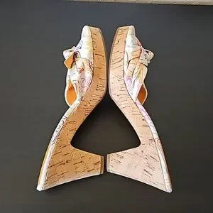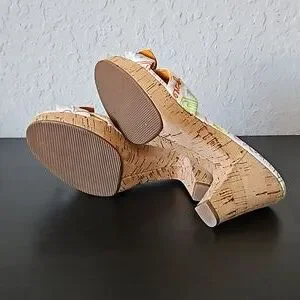 Coach Karen Graffiti Poppy Pop Cork Heels Slide Sandals, size 7.5 B