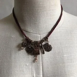 Bohemian copper charm handmade necklace Firefly ornamental with rhinestones 7” length