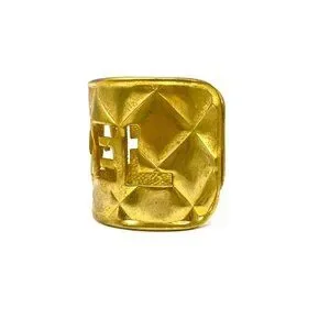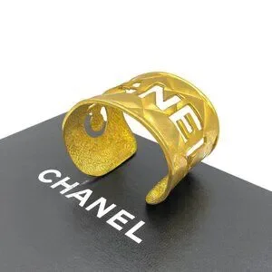 Authentic CHANEL CC Logo Cut Out Vintage Bracelet Cuff Bangle Gold Quilted Wide