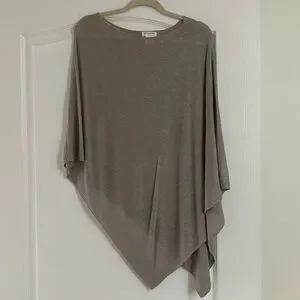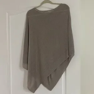 The light beige ladies poncho is in excellent condition. The color matches almost every other color. The soft fabric falls nicely against the body. The one size fits all is 32 inches from the neckline to the point of the poncho. Great addition to a wardrobe.