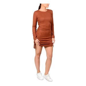 HIPPIE ROSE Womens Brown Long Sleeve Scoop Neck Short Party Body Con Dress XS