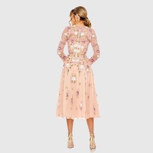 NWT $598 MAC DUGGAL Sequined Floral Long Sleeve High Neck Midi Dress Blush 5716