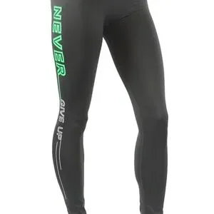 leggings written in green “NEVER GIVE UP”