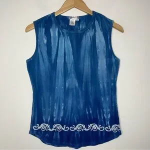 Gramicci Women's Vintage Tank Top Ribbed Cotton Blend Size L Tye Dye Blue