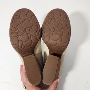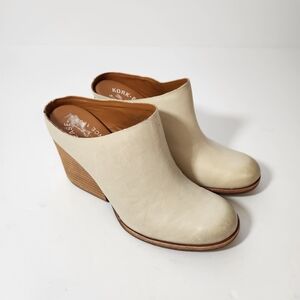 kork-Ease womens sz 7.5 nude tan challis leather slip on block heeled mules $165