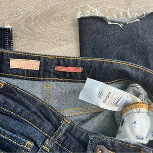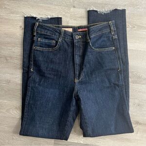 Anthropologie Pilcro Straight Legs Denim Jeans Navy Blue Distressed Size 28