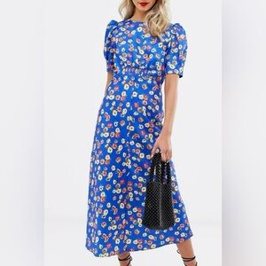 NWT ASOS blue floral midi tea dress size 4