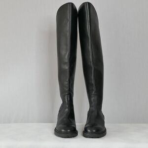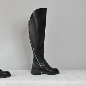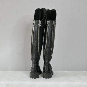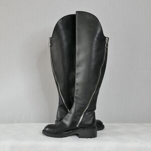 ASH Seven Black Leather Over-The-Knee Moto Boots Sz 37 US 7M 2 Zippers Lug Sole
