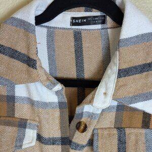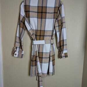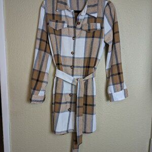 Plaid Single Breasted Belted Shirt Dress Size Large