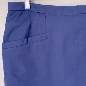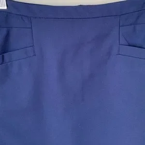 H&M size 10 navy skirt with front slit pockets and mock pockets on the back with an invisible zipper, back slit, good condition
