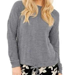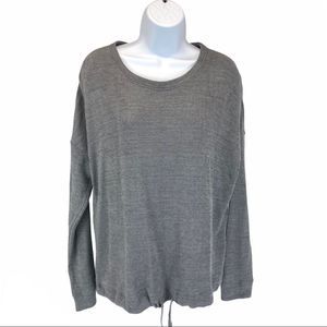 THREE DOTS french terry grey long sleeve pullover w tie - S