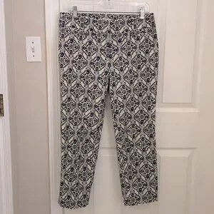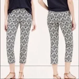 LOFT Like New Cream and Black Patterned Marisa Riviera Cropped Pant