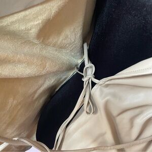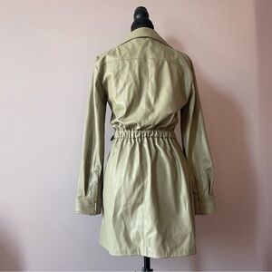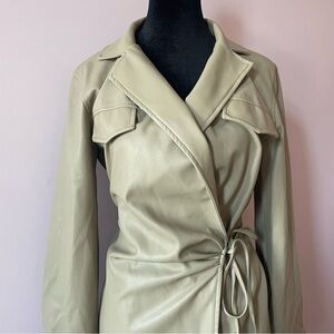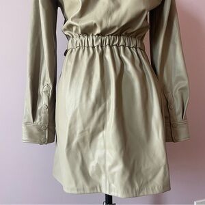 Zara - Beige Tan Camel Faux Leather Self Tie Long Sleeve Wrap Mini Dress Size XS