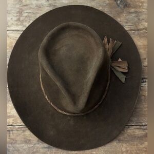 Beautiful brown distressed hat fits between a 6 7/8 - 7 55 - 56