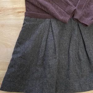 Jacadi Paris Dress. Size 6. Brown/Burgundy wool blend sweater upper. Attached wool blend skirt with a cotton lining. 3 decorative buttons on the left shoulder. Style 1091578. Excellent pre-owned condition. Material and care instructions included in the pictures. Approximate dimensions when laid flat: Length- 23”, Chest- 13”, Sleeve (armpit to cuff)- 14.5”