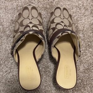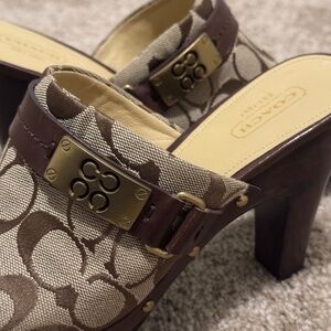 Coach Signature Tan & Brown Ivy Clog Heels. Size 9. Excellent used condition.