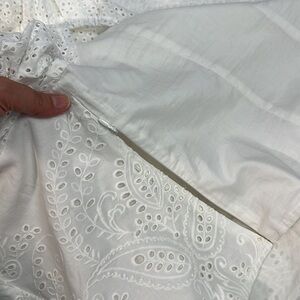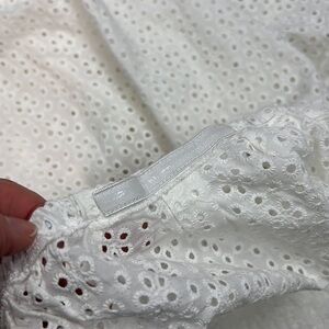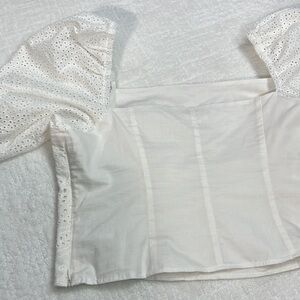 H&M white cotton crop top with eyelet puff sleeves XL