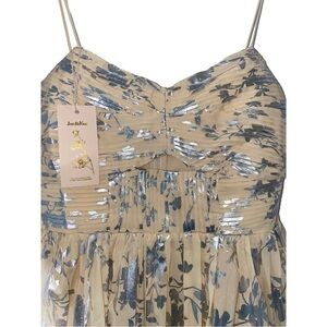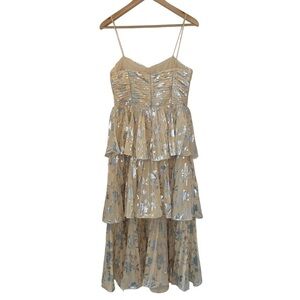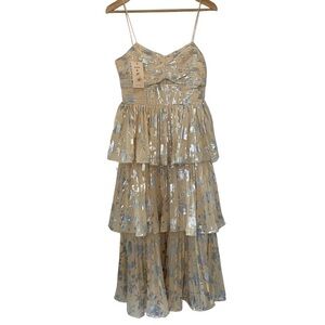 JardinVue Ivory Metallic Spaghetti Strap Tiered Midi Dress size medium NWT!