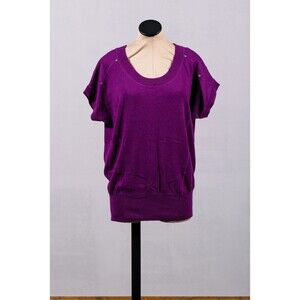 Calvin Klein Purple Wool Blend Short Sleeve Tapered Fitted Pullover Sweater Sz M