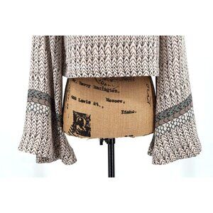 Free People Cropped Top Women Extra Small XS Bell Sleeve Ivory Black Boho