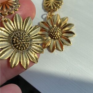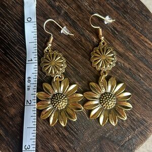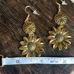 Vintage Sunflower Design Dangle Pierced Earrings Gold Tone Zinc Alloy NWOT